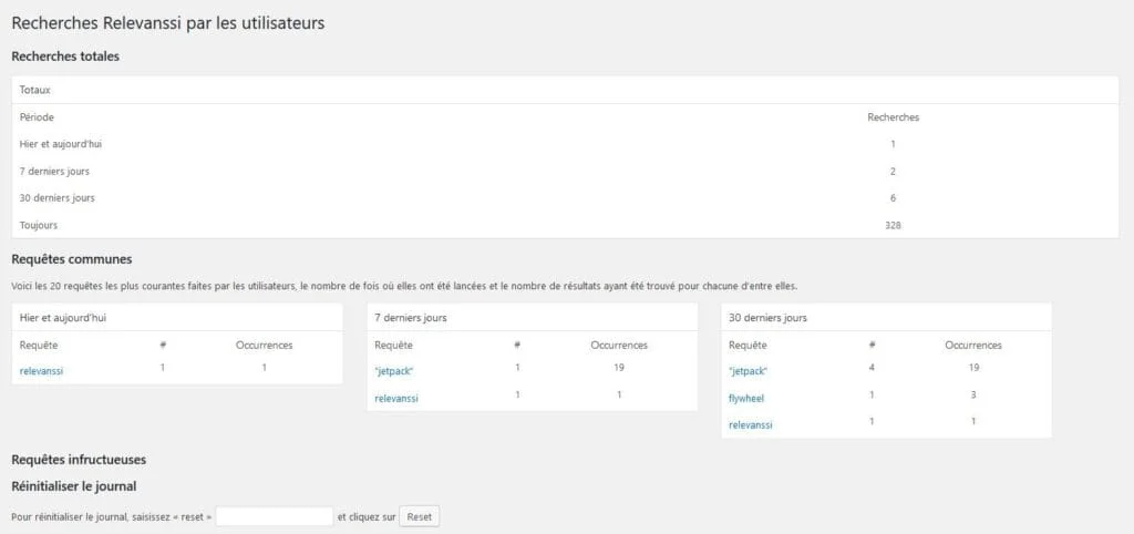 Le journal sert aussi à établir des statistiques, affichées dans le tableau de bord de WordPress. Intéressant pour affiner votre stratégie SEO, par exemple.