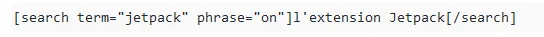 Voici le résultat du code ci-dessus : [search term=“jetpack” phrase=“on”]l’extension Jetpack[/search].