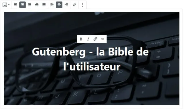 C’est un bloc image & texte en surimpression. Vous pouvez vous en servir pour un call to action simple par exemple. La barre d’outils texte est simple, mais suffisante.