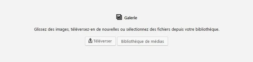 Lorsque vous créez un bloc de type Image ou Galerie, Gutenberg met à votre disposition un espace spécifique.