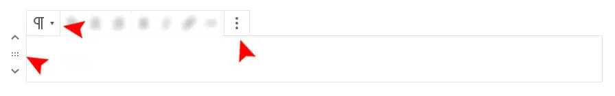 À la gauche de chaque bloc, vous avez deux flèches, pointant vers le haut ou vers le bas, séparées par une double ellipse : deux [icon name=“ellipsis-h”] positionnés l’un sur l’autre. Vous pouvez n’avoir que la flèche du haut, ou uniquement celle du bas, si vous êtes sur le premier ou le dernier bloc du document.