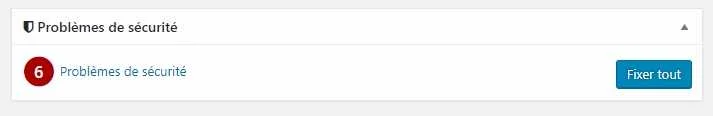 Soit vous cliquez sur Fixer tout pour sécuriser votre site, soit vous êtes curieux (ou inquiet) et vous cliquez sur Problèmes de sécurité, une nouvelle page s’affiche qui détaille les différents problèmes et vous permet de les fixer tous en une fois ou un à un.