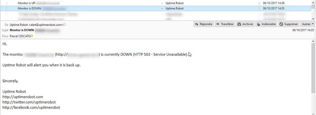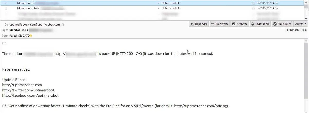 Dès qu’un site est inaccessible, vous recevez une alerte par email :