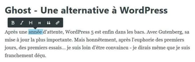 Pour rédiger un article, on est dans du Gutenberg like, avec une barre d’édition hyper réduite.