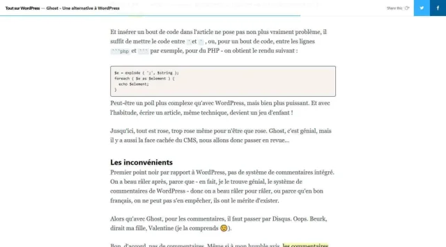 Alors qu’avec Ghost, pour les commentaires, il faut passer par Disqus. Oops. Beurk, dirait ma fille, Valentine (je la comprends ?).