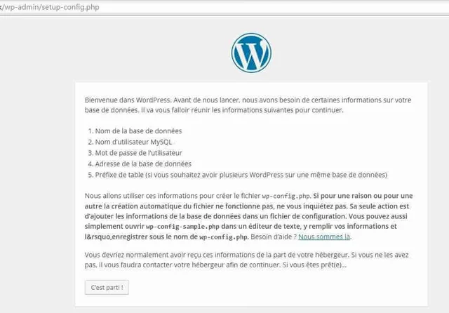 Nous aurons besoin de WordPress aussi. Facile, il suffit de se rendre sur la page dĂ©diĂ©e Ă la derniĂšre version en françaisâ. Vous y trouverez une archive (en fait deux, une au format zip, universel, et une au format tar.gz plus spĂ©cifique aux plateformes Linux). Je cite lâintro :