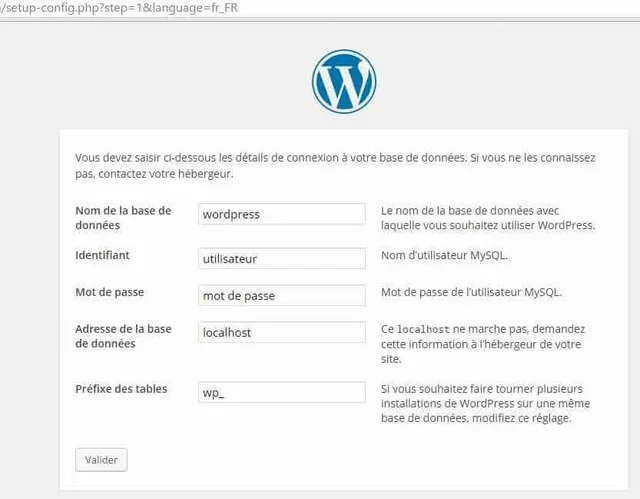 Avec lâĂ©cran suivant on entre directement dans le vif du sujet : câest maintenant quâil faut saisir toutes les donnĂ©es prĂ©cĂ©demment reçues de notre hĂ©bergeur.