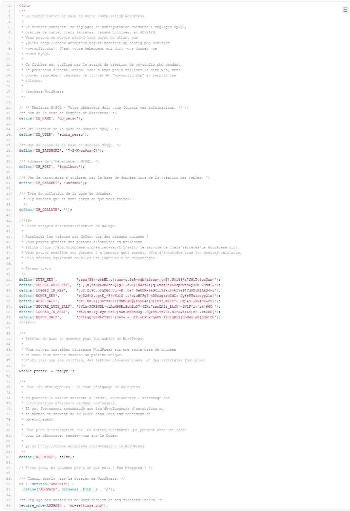 Tout ce  que nous allons ajouter dans wp-config.php va lâĂȘtre au-dessus du commentaire de la ligne 87.