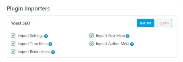Rendez-vous dans Rank Math > Import & Export, dans lâencart Plugin Importers et cliquez sur Import.