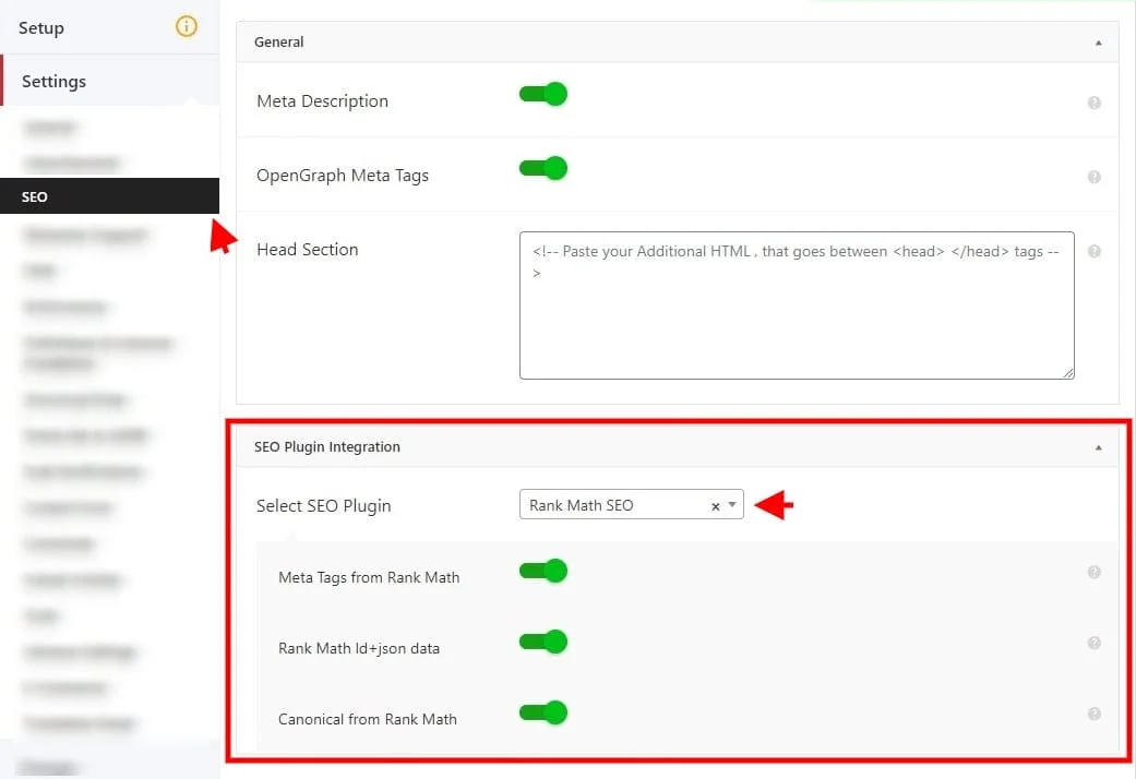 Si vous avez AMP for WordPress installĂ©, vous aurez Ă vous rendre dans les rĂ©glages de cette extension pour configurer lâanalyse SEO AMP. Rendez-vous dans AMP > Settings, dans lâonglet SEO, sĂ©lectionnez Rank Math SEO et activez via les boutons switch.