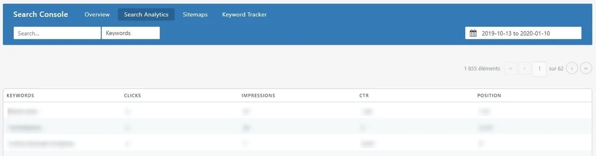 Les donnĂ©es de la Search Console sont exploitable depuis Rank Math, qui propose plusieurs onglets Ă partir des donnĂ©es rĂ©cupĂ©rĂ©es via lâAPI Google.