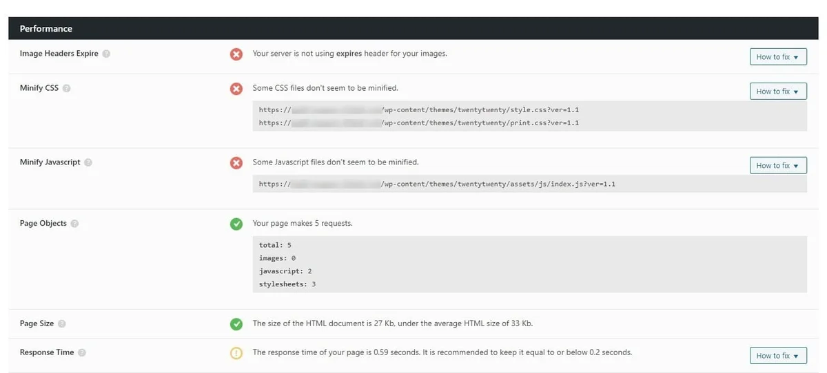 Un maximum dâindicateurs au vert dans cette section sont la garantie dâun temps de chargement optimisĂ©. Et la vitesse de chargement des pages est prise en compte par Google pour votre placement dans les rĂ©sultats de recherche.