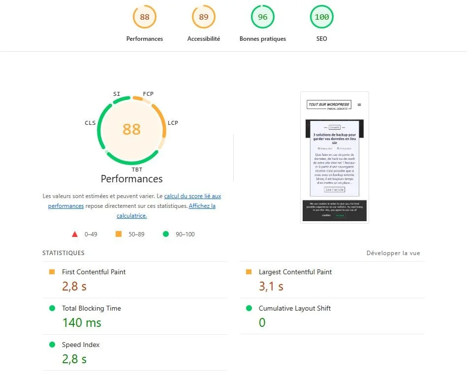 - le score Pagespeed Insights mobile est passé de 59 à 88 sans autre optimisation ! ????