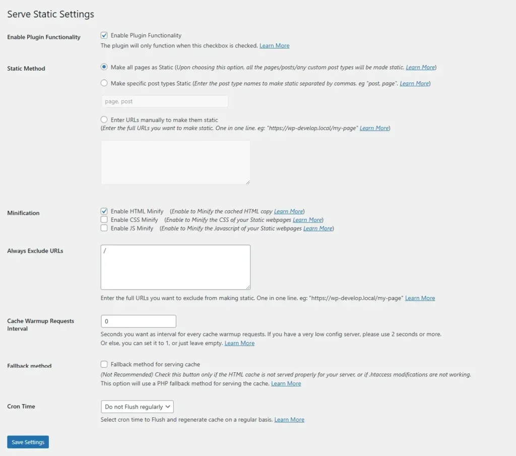 Serve Static permet de mettre en cache la totalité des pages de votre site. Les fichiers générés sont au format HTML et ne nécessitent pas d’appel en base de données. D’où une plus grande réactivité et des temps de chargement largement inférieurs.