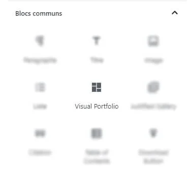 Pour insérer un bloc précédemment créé, vous trouverez un bloc dédié dans les blocs communs :